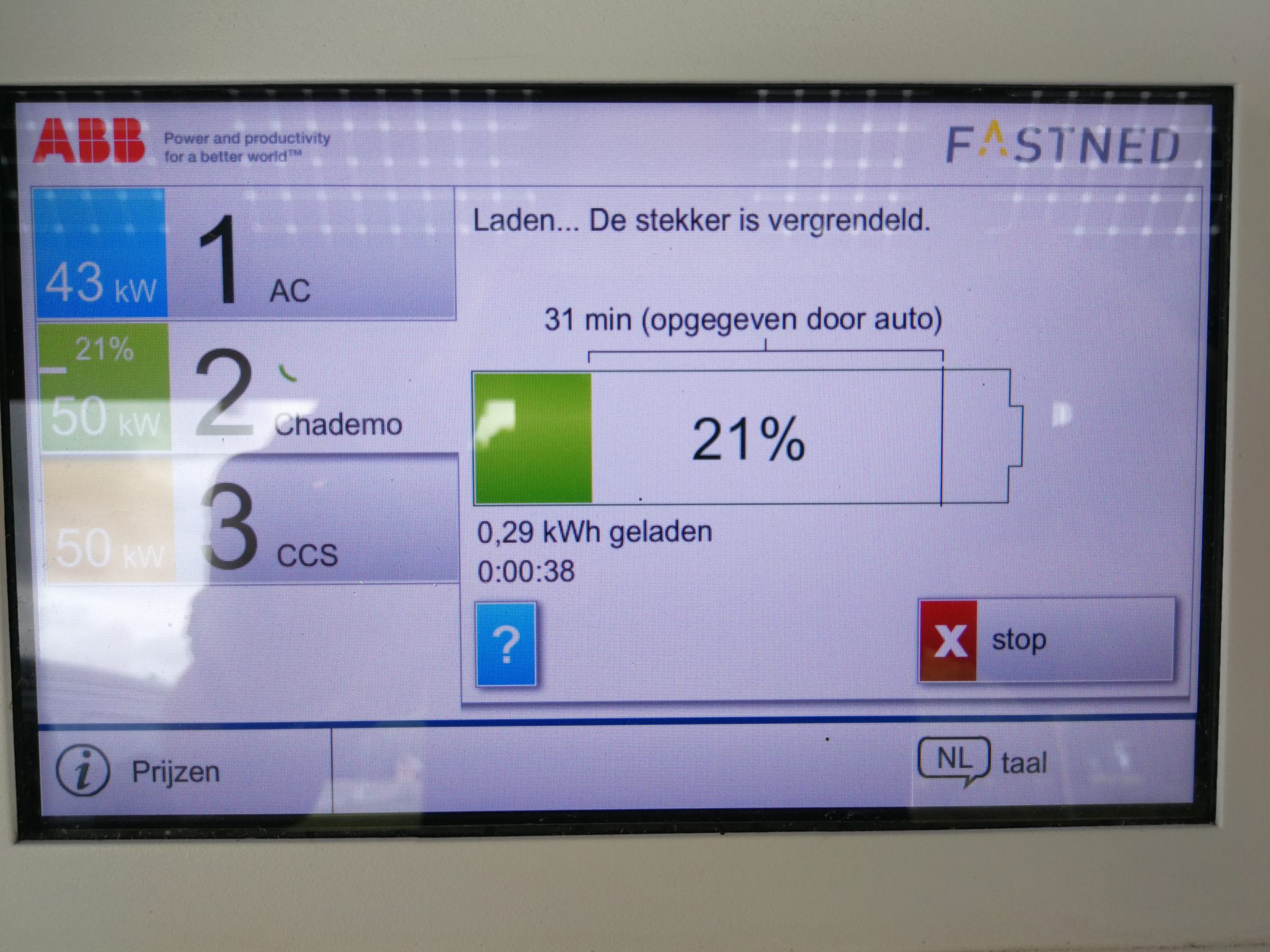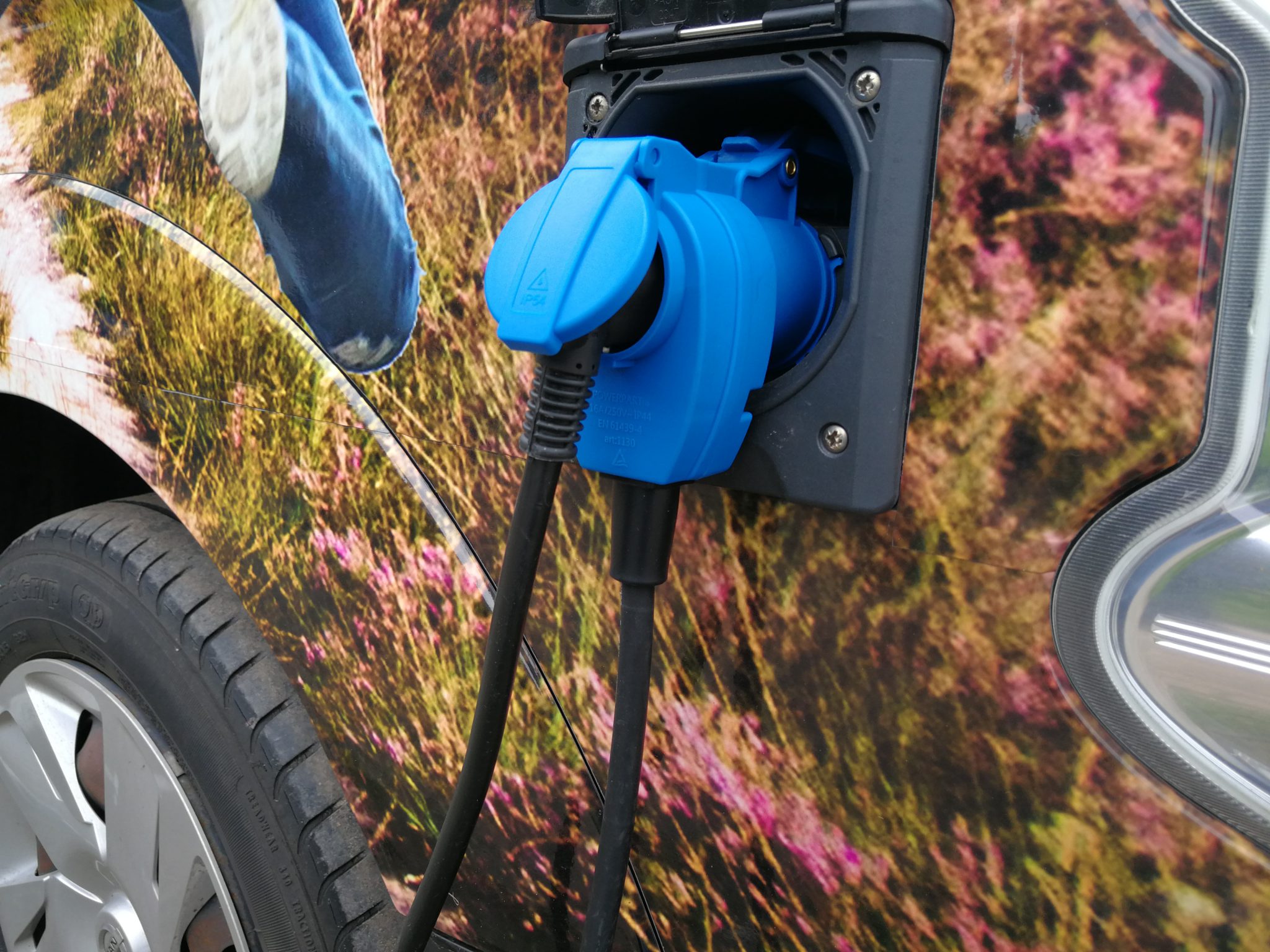Met de camper kun je geen grote afstanden afleggen, maximaal 120km. Dus na 100km wil je voor de zekerheid wel weer je voertuig aan de lader hebben. Door de snellaad functie (CHAdeMO 50 KWh) kun je de accu binnen een halfuur van 20% naar 90% krijgen. Daardoor waren de laadmomenten eigenlijk meer fijne pauzes, dan obstakels. Het was ook heel handig dat de E-camper op de camping gewoon in het stopcontact kon, doordat er een speciale laadkabel voor 220v meegeleverd wordt. (Instelbaar voor 6, 8 of 10 ampère)