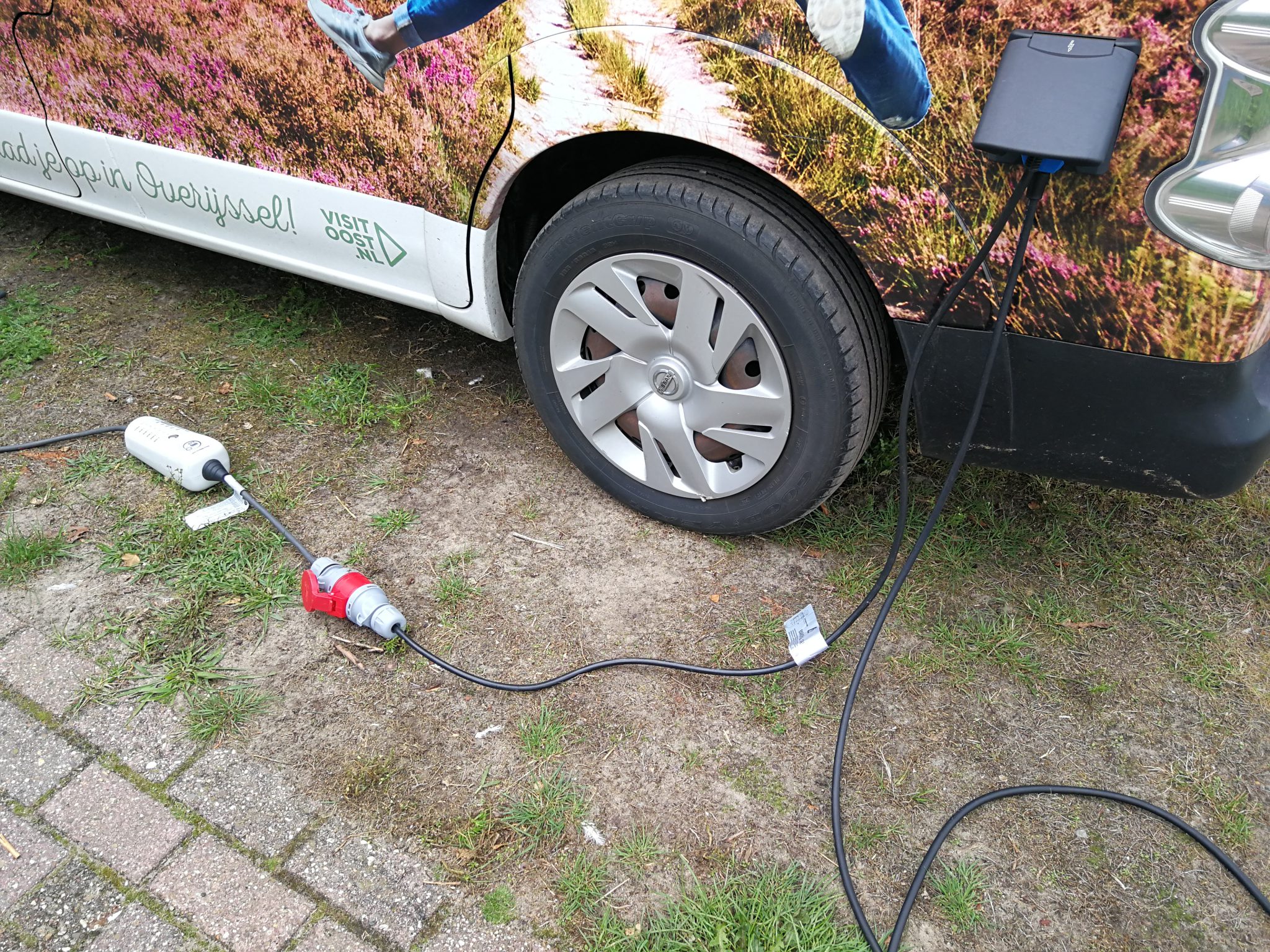 Het Varsenerveld bleek de locatie voor ophalen en terugbrengen te zijn voor de eerste E-camper van Nederland. De camper was net teruggebracht, dus kon ik direct even een kijkje nemen. Het was een opvallend compacte camper, maar alles wat je van een camper verwacht leek erin te zitten en ook nog eens echt 100% elektrisch! Na een kort overleg met het thuisfront besloot ik mijn auto (gratis) achter te laten en de camper voor een paar dagen te huren.
