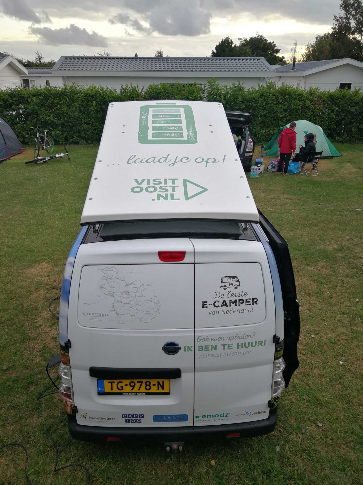 De camper is een Nissan e-NV200 met een 22kWH accu, die in 2018 is omgebouwd tot camper. Hij is geschikt voor 2 personen en heeft een keukenblok en een eethoek. Daarnaast beschikt de camper over handige accessoires zoals buitenstoelen, servies, kookspullen en een luifel. De eerste E-camper van Nederland staat gewoon bij ons op het erf en is te huren via: https://www.camptoo.nl/camper/5120/De-eerste-E-camper-van-Nederland